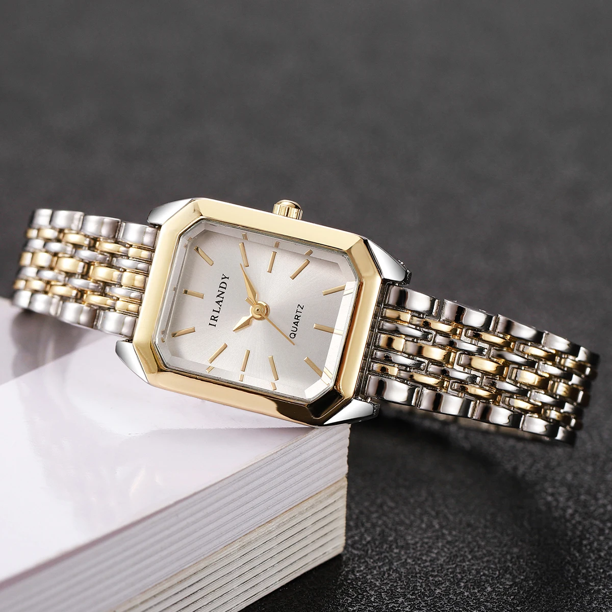 Elegant women’s wristwatch with a sleek rectangular dial and minimalist design.